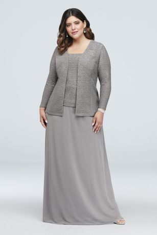 Glitter Knit And Mesh Plus Size Gown With Jacket David S Bridal